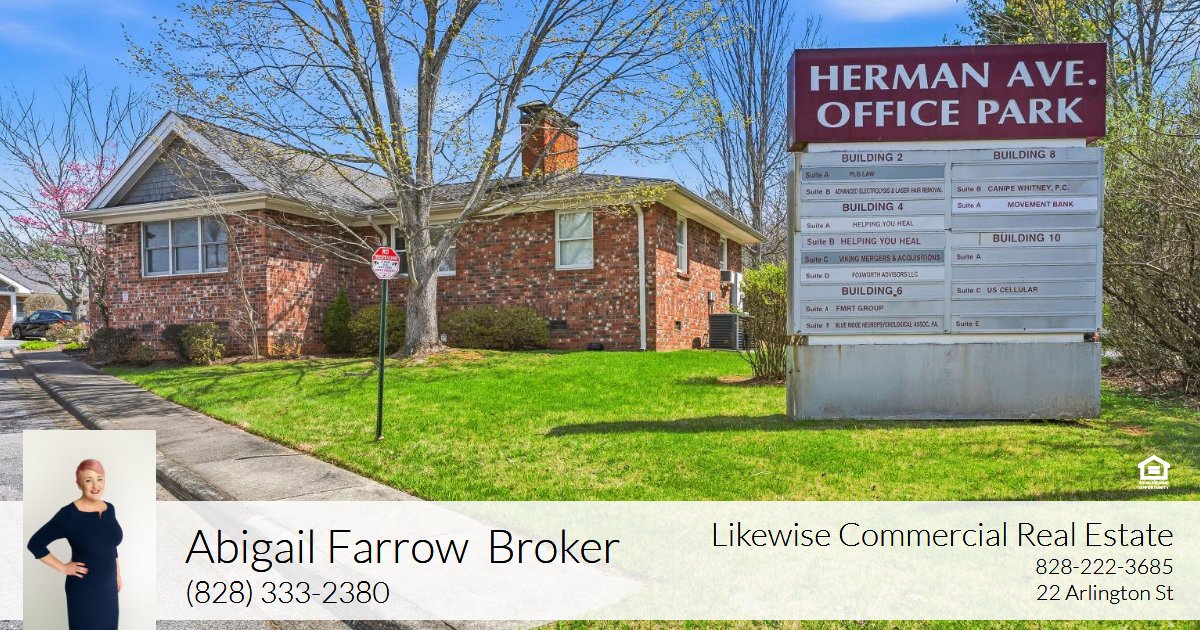 Positioned within the established Herman Avenue Office Park, this ±1,658 SF commercial investment opportunity offers a fully occupied, multi-tenant building ideal for investors or owner-users seeking stable income in a convenient South Asheville location. The building is freestanding and currently has two tenants in separate units. Future users can occupy one or both spaces. Each unit has its own reception area and entry door, is individually metered, and has updated interiors. Office Park is clean and well-maintained, and the HOA has strong financials and reserves. Zoned HB (Highway Business), the property supports a wide range of potential uses, including professional offices, medical or wellness services, boutique retail, personal services, or specialty business operations. The building benefits from ample parking within a shared lot and a professional business environment surrounded by complementary commercial users. Conveniently located adjacent to Hendersonville Road at a signalized intersection near Long Shoals Rd, approximately 2 miles from Interstate 40, and less than 4 miles from Interstate 26, the property provides excellent regional accessibility and strong connectivity to Asheville’s primary commercial corridors.
